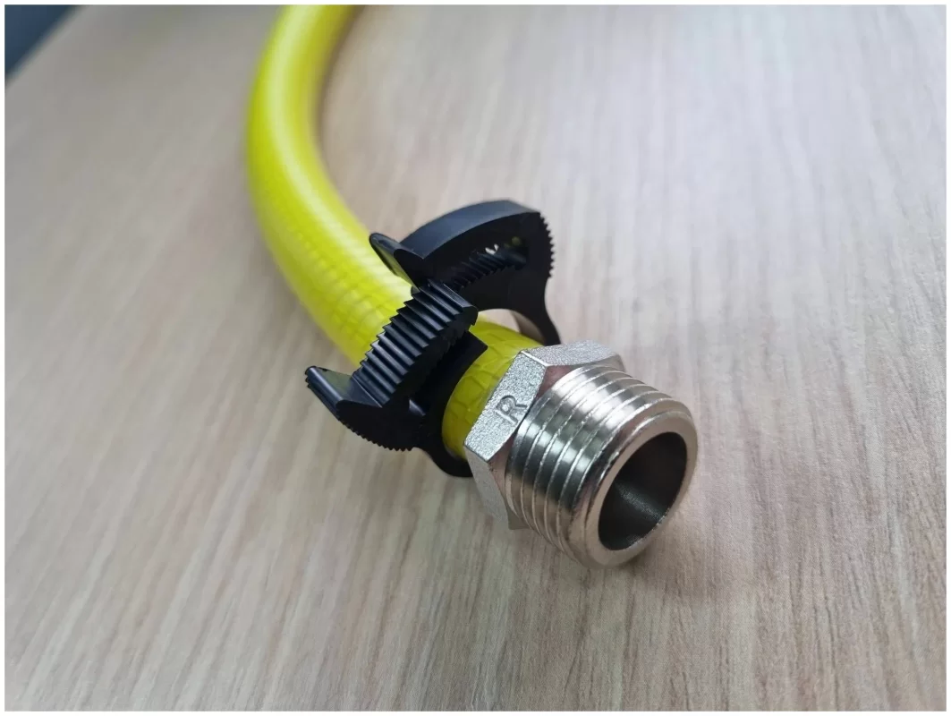 *При максимальном смыкании замка хомута, для его разъединения, возможно, понадобиться инструмент в виде отвертки, чтоб сместить центральный зубчатый шток по отношению к зубчатому пазу в сторону.